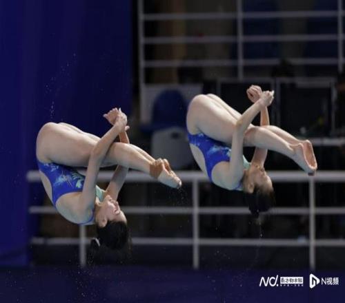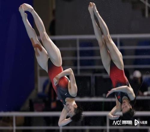 奥运冠军陈艺文和队友林珊每跳均列第一,三跳过后以总分225.63分排名第一,广东另一对组合梅颖芯/欧阳钰以总分203.40分排名第三,四川队的陈佳/杨睿琳以总分211.05分排名第二。