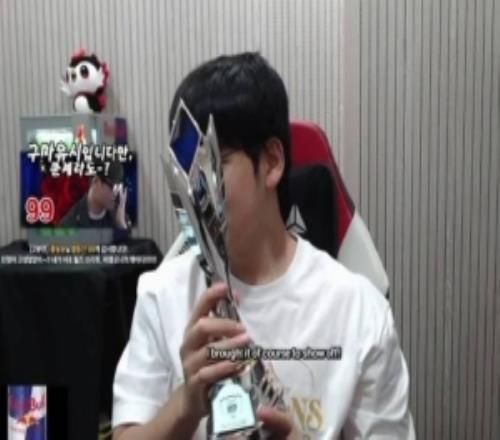 Gumayusi:我特意把FMVP奖杯带来了给大家炫耀一下哈哈哈!我觉得今年的FMVP奖杯是最漂亮的,我看了其他人前几年的我觉得我的最好看!