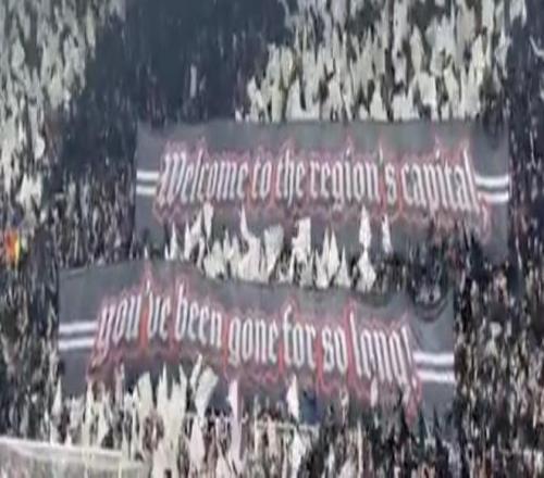除此之外,纽卡主场还有文字tifo,上面写着:“欢迎来到本地区的首府,你们已经离开太久了!”